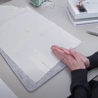 5. I suggest watching the video above carefully for this step. Next, we're going to fold and press in the fold lines. Starting with the shorter edge, fold towards the placket opening and press flat, fold back in half and press again. Repeat on the longer edge of the placket.